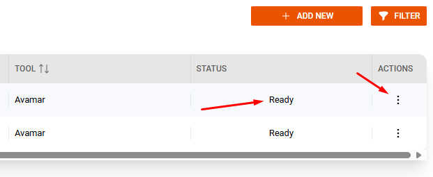 | Show | Show connection details, display Token, configuration credentials, API URL, username and password. |