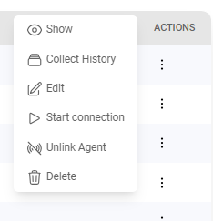 | Unlink Agent | Unlink the Token/Connection from the agent. Usual for changing the collection server. |