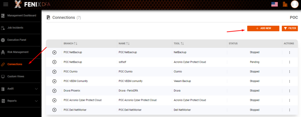 The collection agent can have more than one connection, from different backup software. It is created from access to the FenixDFA panel, when the company’s accesses and configurations have already been created.