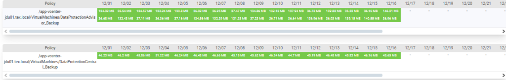 On the dashboard’s execution page, we check all active backup policies, filtering by month and having an easy view of the routine