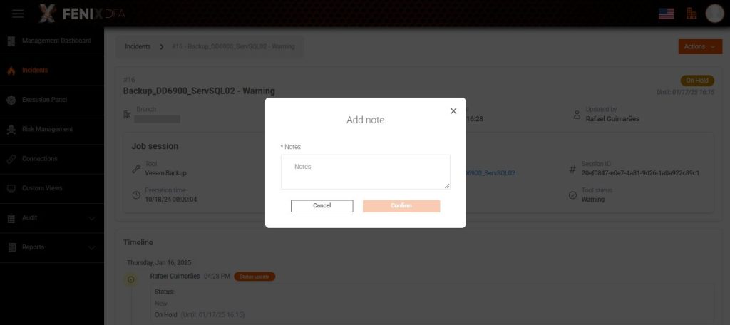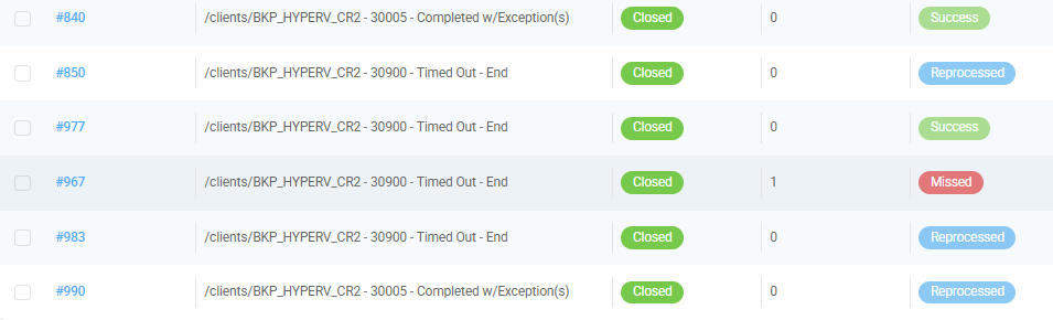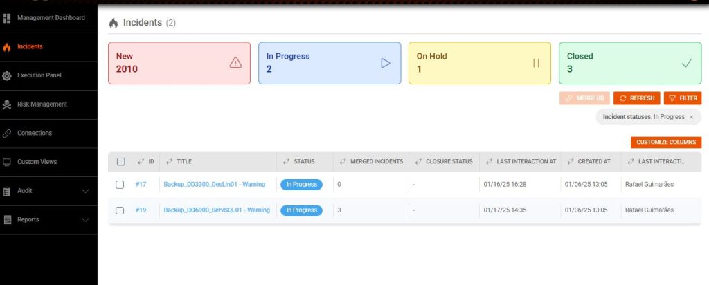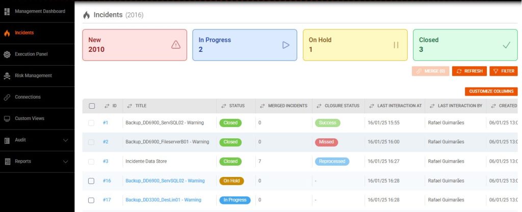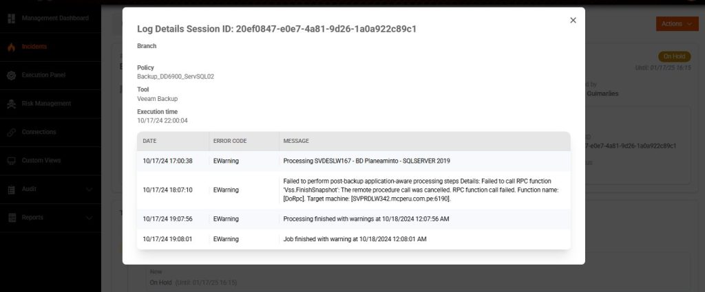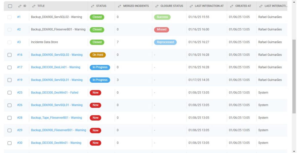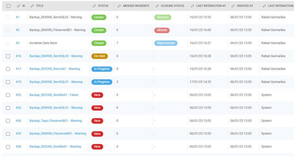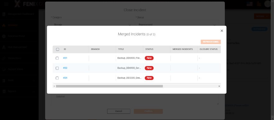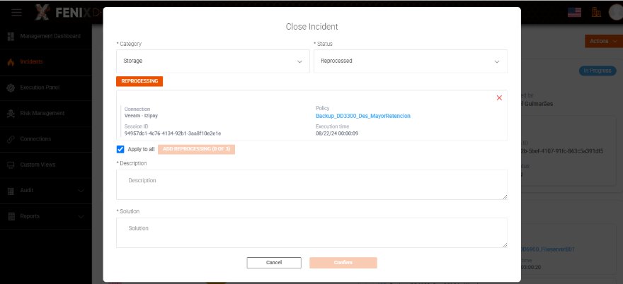 To close incidents as reprocessed, merged or not, we must indicate the “Reprocessing” sessions. This way we maintain traceability of actions on backup failures.