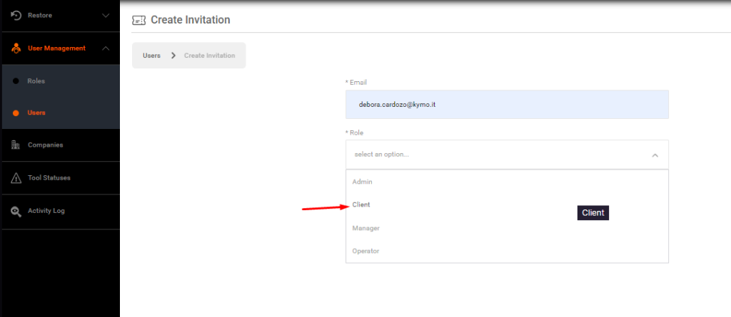 After selecting the user and saving it, they will receive an email inviting them to access the tool, with only the information configured in the virtual location visible.
