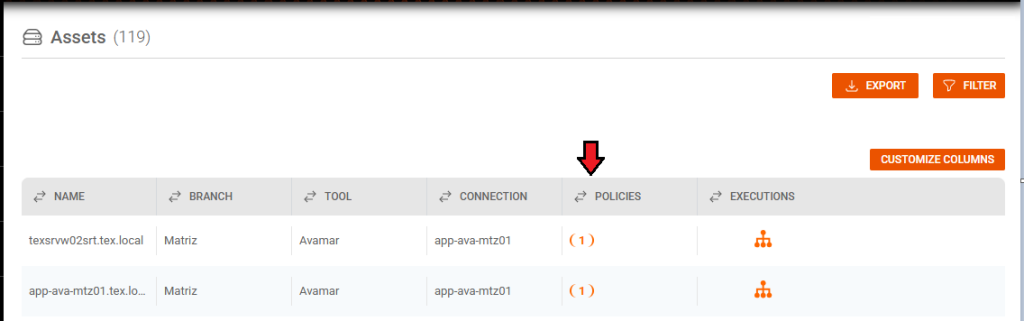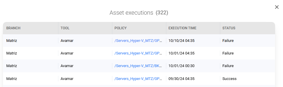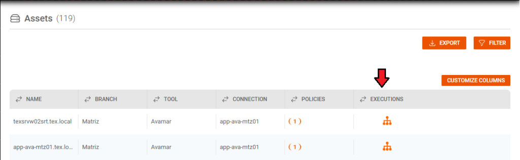 In the executions column, we can check asset execution data, with the date it was executed and the status:
